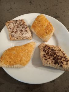 Nota: nella nostra foto la marmellata è stata messa prima di mangiarle, ma volendo la farcitura può essere anche messa internamente con una saccapoche dopo cottura o durante la fase di stesura della pasta.
